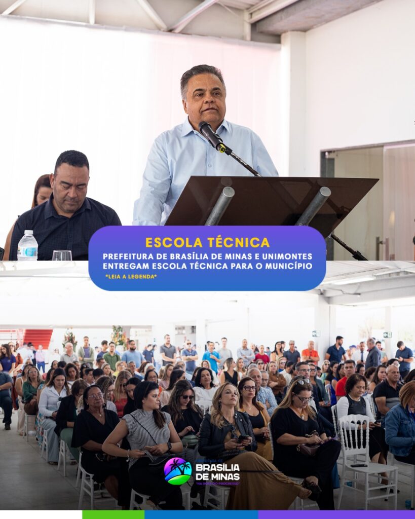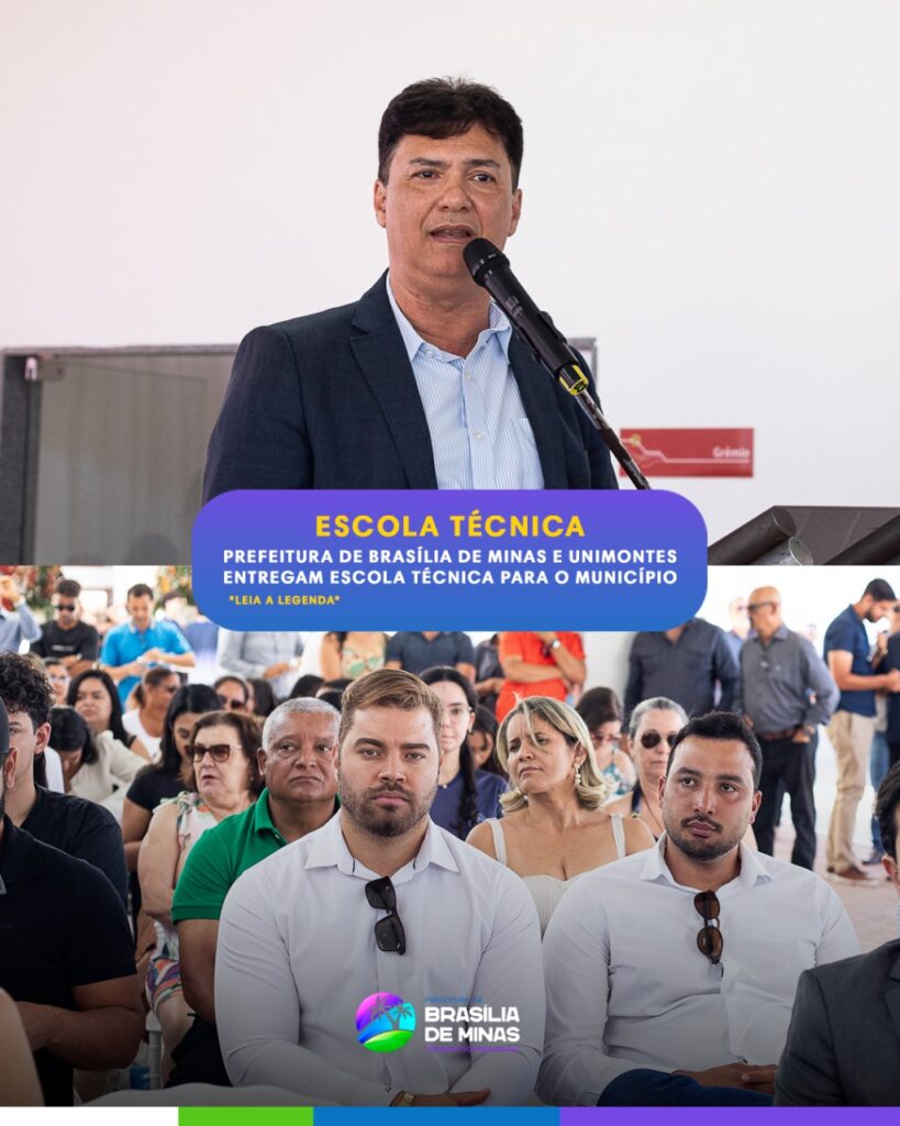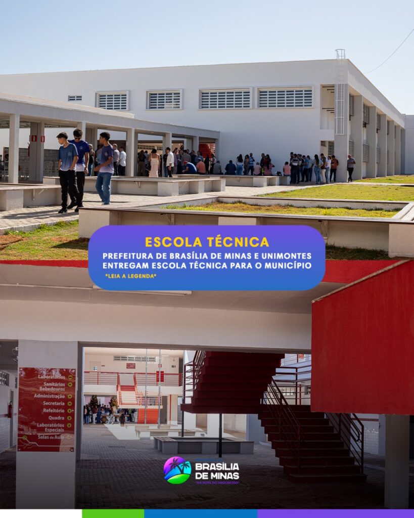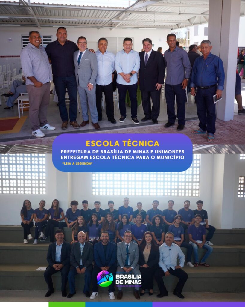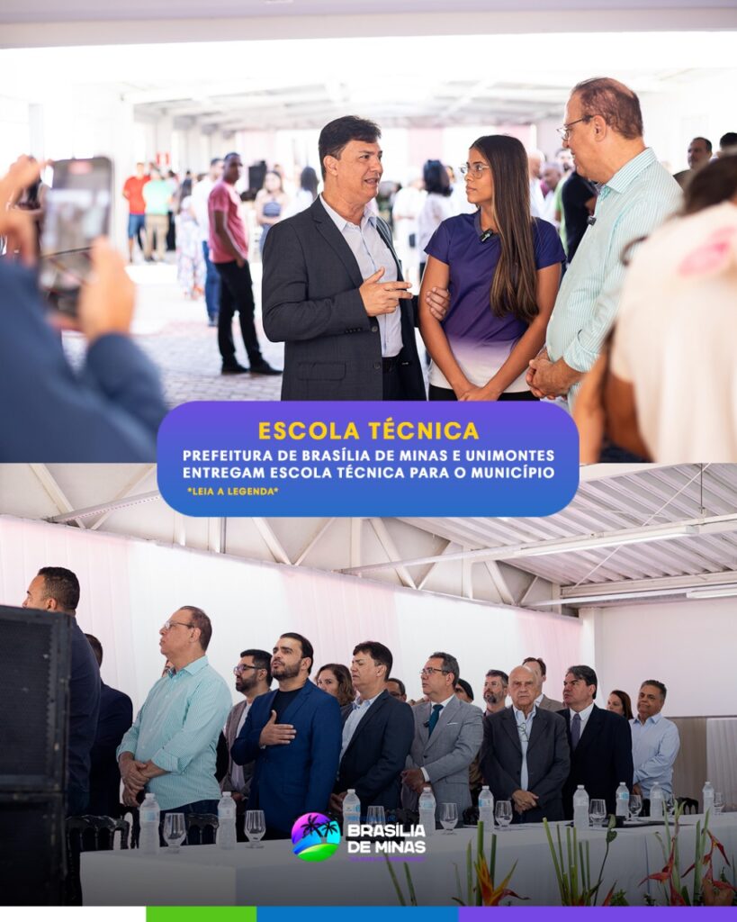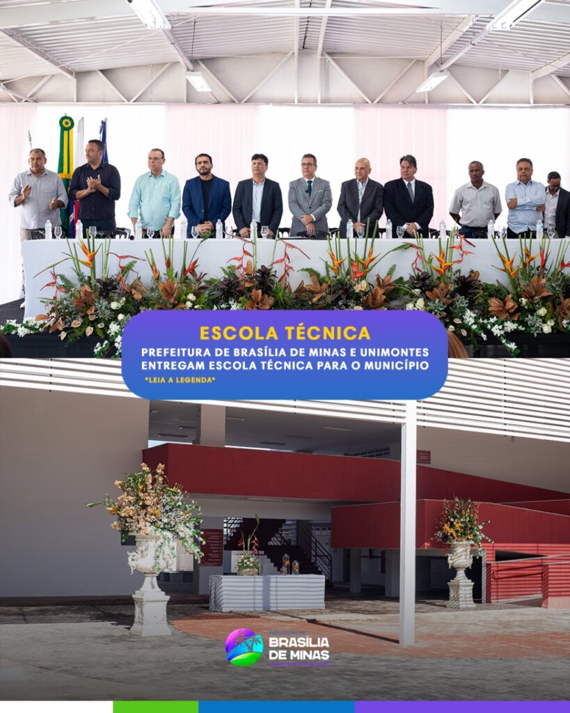 Na manhã de ontem, sexta-feira, 08, a população de Brasília de Minas celebrou uma conquista histórica: a Escola Técnica. A Universidade Estadual de Montes Claros – UNIMONTES, em parceria com a Prefeitura de Brasília de Minas, realizaram a solenidade de entrega da Escola Técnica do Programa Brasil Profissionalizado ao município de Brasília de Minas. Com o objetivo de impulsionar a educação e o desenvolvimento regional, a nova estrutura vai oferecer cursos técnicos, extensão universitária e projetos para jovens e adultos de toda a região do Norte de Minas.